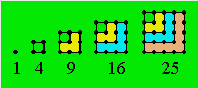 lui additionne son rang et le rang suivant. Par exemple, 576 est un carré